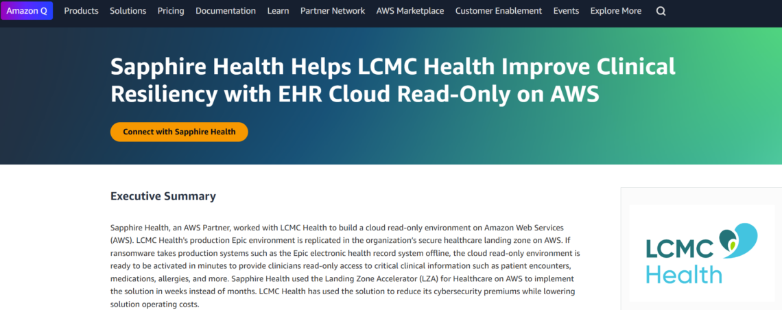 Sapphire Health Helps LCMC Health Improve Clinical Resiliency with EHR Cloud Read-Only on AWS